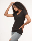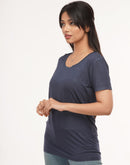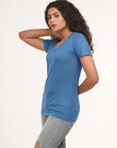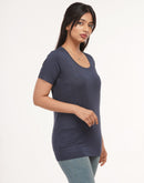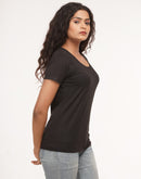 - The square neck design adds a touch of sophistication to your casual wardrobe. This distinctive neckline is thoughtfully designed to provide a clean and polished look, framing your collarbone elegantly while offering a versatile canvas for accessorizing. The T-shirt's sleek and minimalist appearance makes it an ideal choice for a variety of occasions, from casual outings to relaxed weekends.