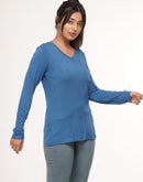 - Pair it with your favorite jeans, leggings, or skirts – the V-neck Long Sleeve T-shirt effortlessly complements various wardrobe pieces. Its classic design ensures that it remains a timeless addition to your collection, offering both style and practicality for seasons to come.
